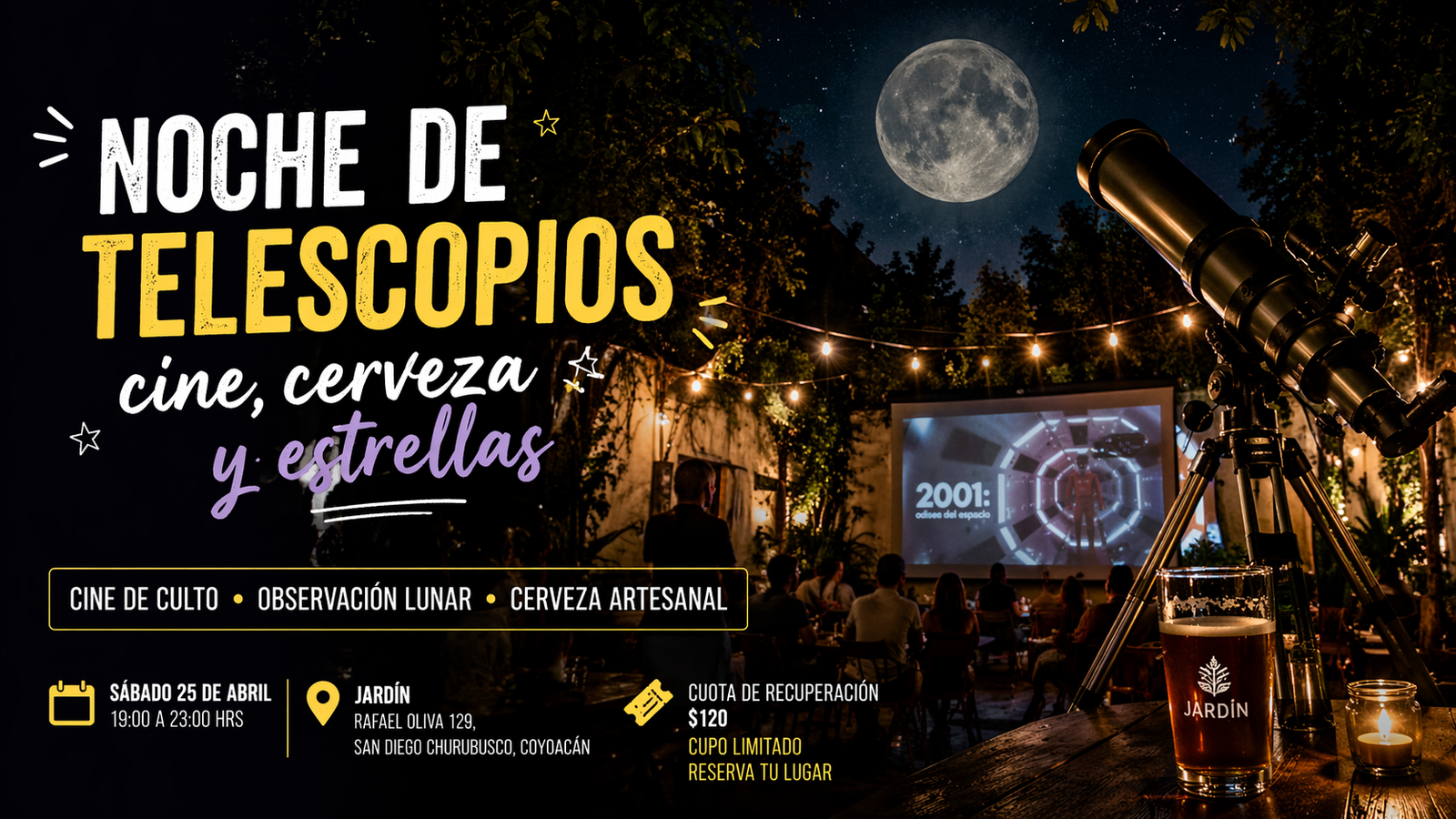 Bajo las estrellas en Coyoacán: telescopios, cine y cerveza en una noche diferente