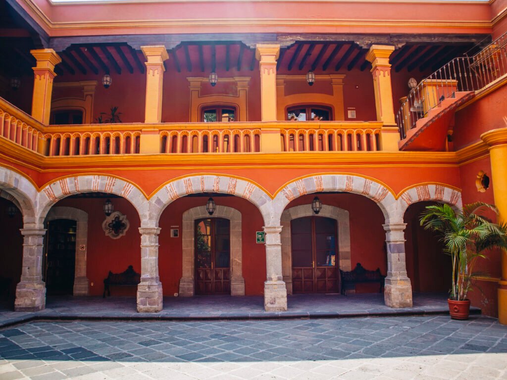 La Casa Alvarado conserva elementos coloniales originales: un patio central con fuente, ventanales enmarcados en cantera, techos altos, puertas de madera labrada y una atmósfera de serenidad que transporta al visitante a otra época.