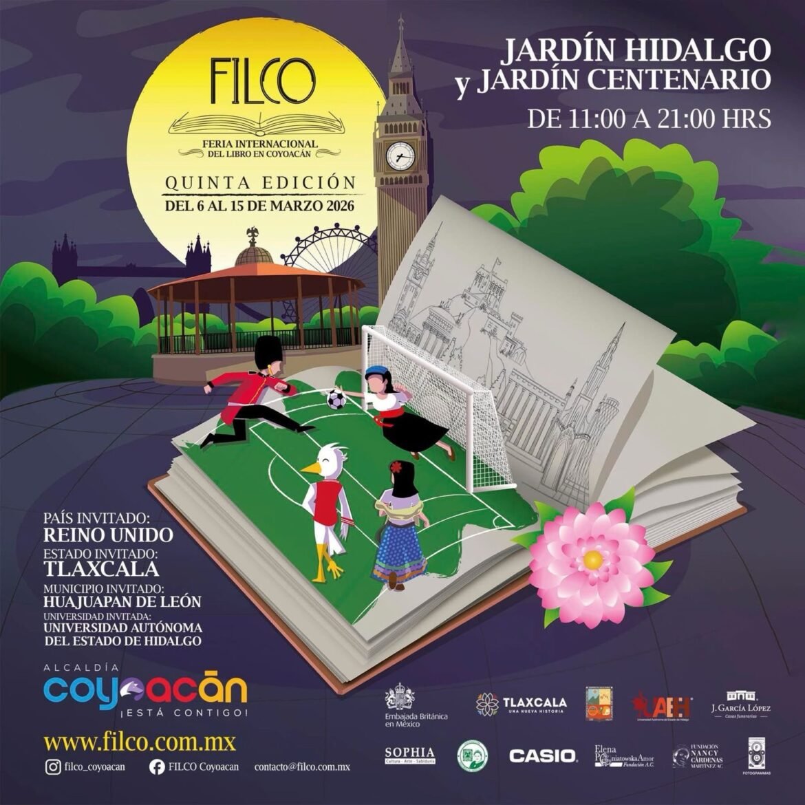La Feria Internacional del Libro en Coyoacán (FILCO) celebra su quinta edición en 2026, consolidándose como uno de los encuentros culturales más importantes del sur de la Ciudad de México. Del 6 al 15 de marzo de 2026, el corazón de Coyoacán se llenará de libros, actividades culturales y encuentros con autoras y autores.